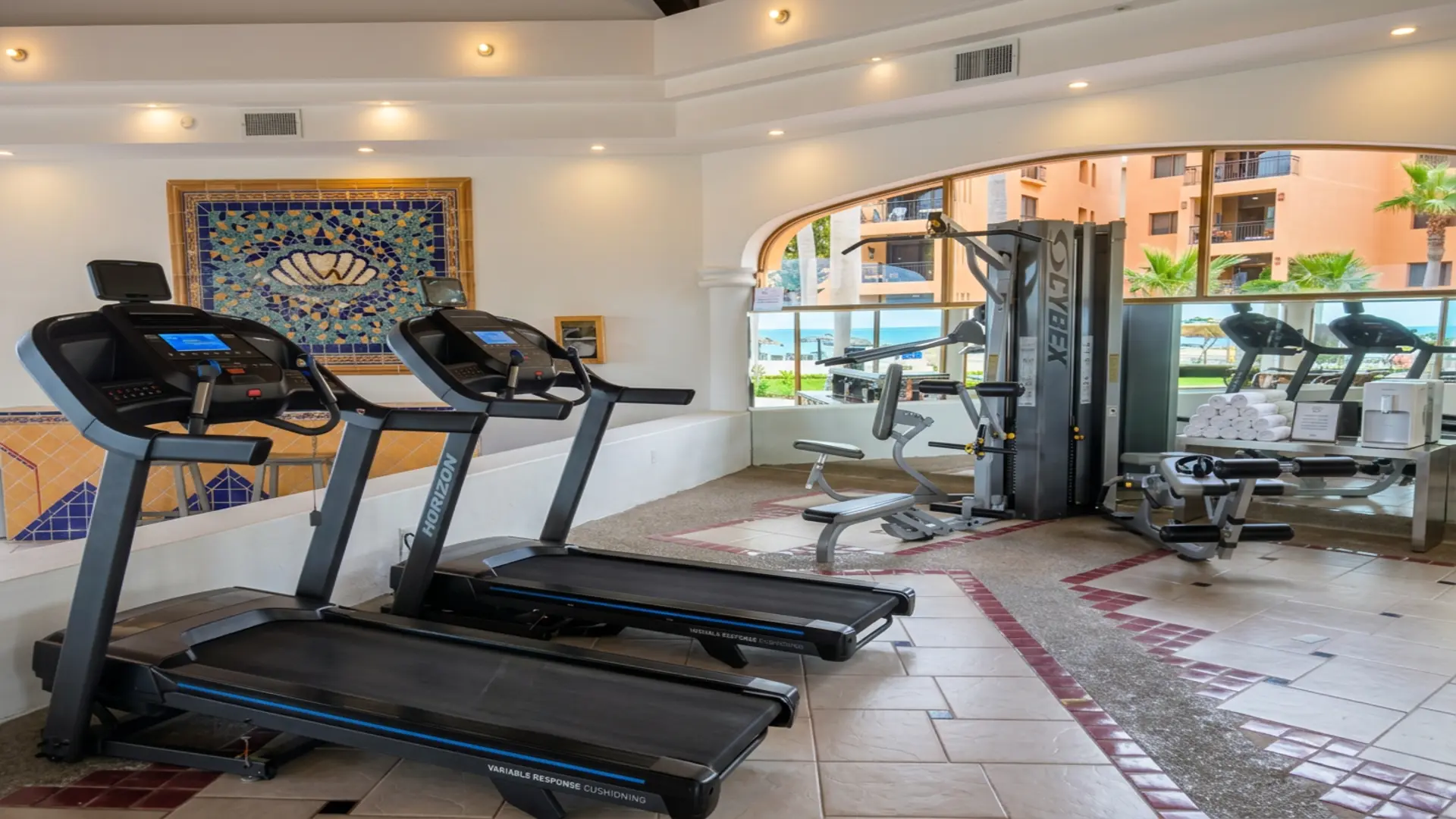 Located inside the clubhouse (which is in the center of the resort), you will find gym equipment, multiple tables and chairs, and both a men’s and women’s restroom.